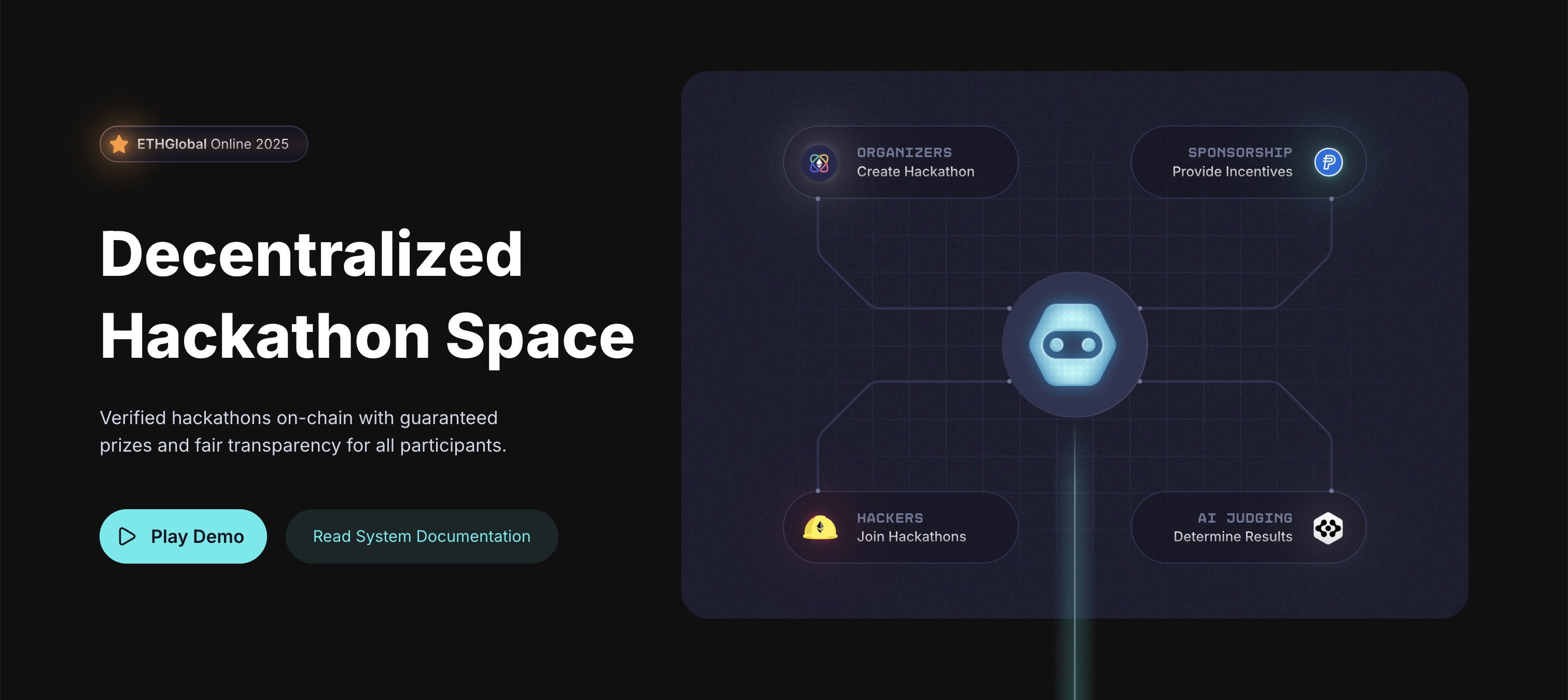 Smart contract serves as a backbone. Also AI tooling helps judges make decisions by analyzing submissions can help scan the projects and find plagiarism or any issues by using Github MCP.